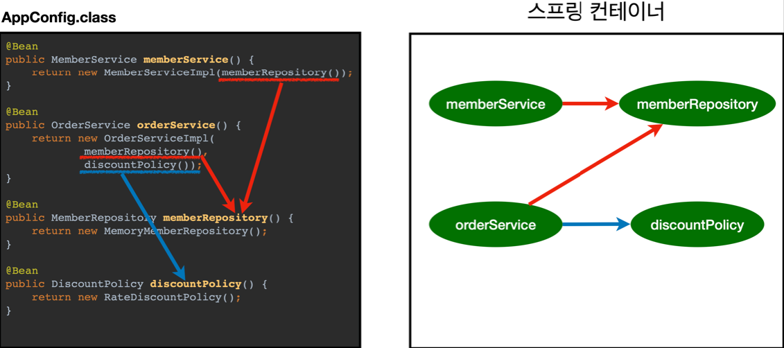 이해할 때는, 스프링 빈이 등록되고 의존 관계가 이후에 주입된다고 이해를 해도 되지만, 실제로 생성자로 의존관계를 주입받을 때는, 스프링 빈 생성과 의존 관계 주입이 동시에 일어납니다[2].