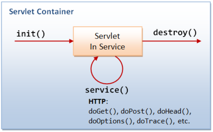 처음 요청이 들어와서 서블릿 객체 인스턴스가 없으면 init() 메소드로 만들고, 이후에는 같은 서블릿 객체 인스턴스로 고객의 요청을 수행합니다.