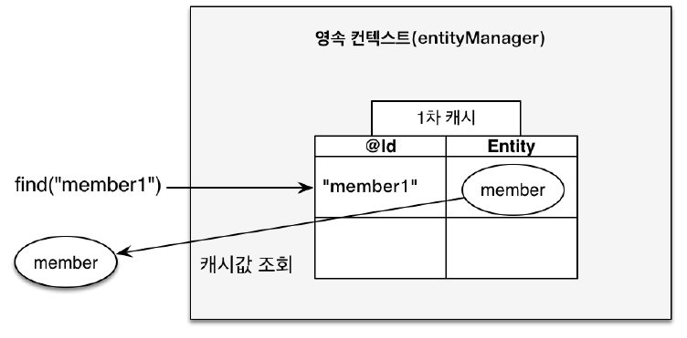 Member findMember1 = em.find(Member.class, "member1"); // 1차 캐시에서 조회