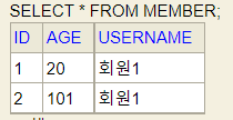 적용되는 컬럼은 "username"과 "AGE"입니다. 참고로 이와 같이 컬럼을 하나는 대문자, 하나는 소문자로 일관성 없게 지정하는 방식은 바람직하지 않으며 저는 필드의 이름이 아닌 컬럼의 이름으로 속성을 작성해야 함을 나타내기 위해 고의로 이렇게 예시를 만들었습니다.