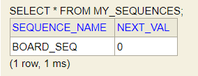 CREATE SEQUENCE BOARD_SEQ START WITH 1 INCREMENT BY 1;